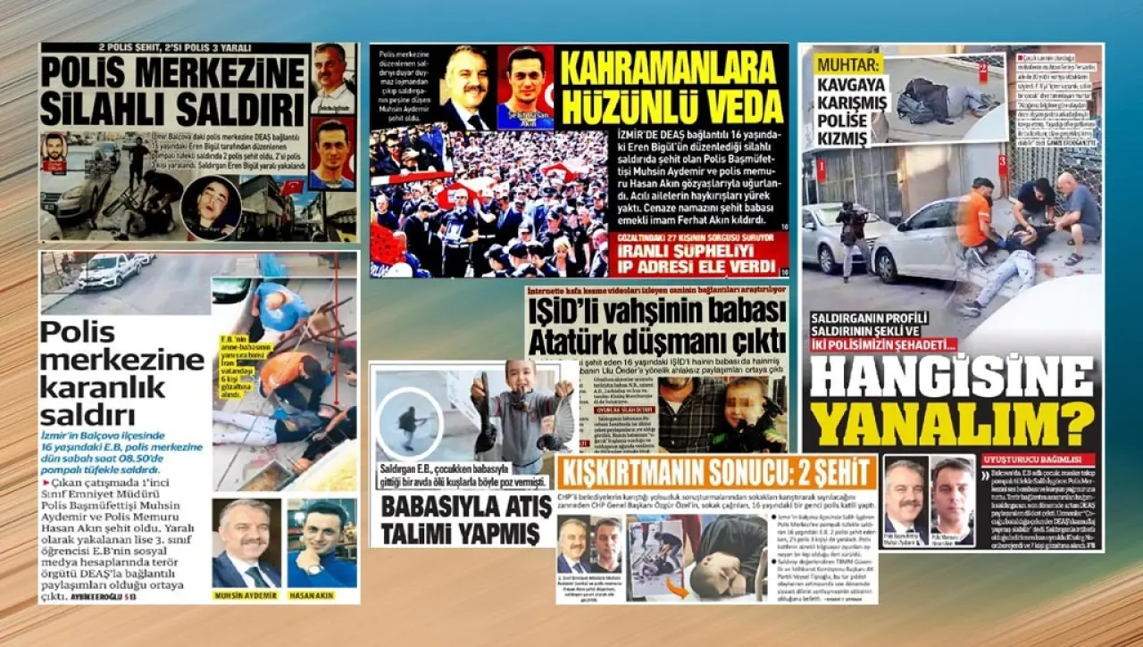 Onlarca haber sitesinin haberinde de IŞİD’den eser yoktu. Yeni Akit ise IŞİD’i gizlemekle kalmadı, “Özgür Özel’in sokak çağrıları 16 yaşındaki bir genci polis katili yaptı” yazarak, mantık dışı bir yaklaşımla Özgür Özel’i suçladı.