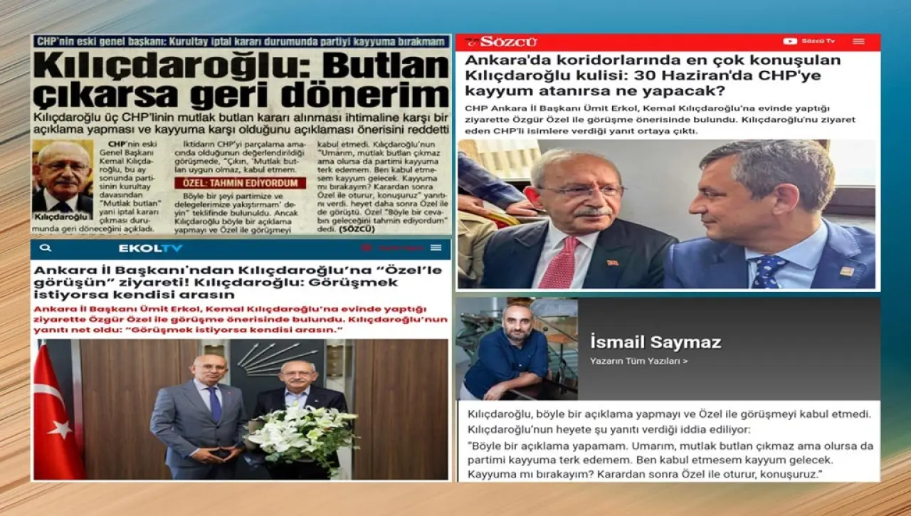 “24 Haziran 2025 tarihli Sözcü Gazetesi: Kılıçdaroğlu ‘Umarım, mutlak butlan çıkmaz ama olursa da partimi kayyuma terk edemem. Ben kabul etmesem kayyum gelecek. Kayyuma mı bırakayım? Karardan sonra Özel ile oturur konuşuruz.’