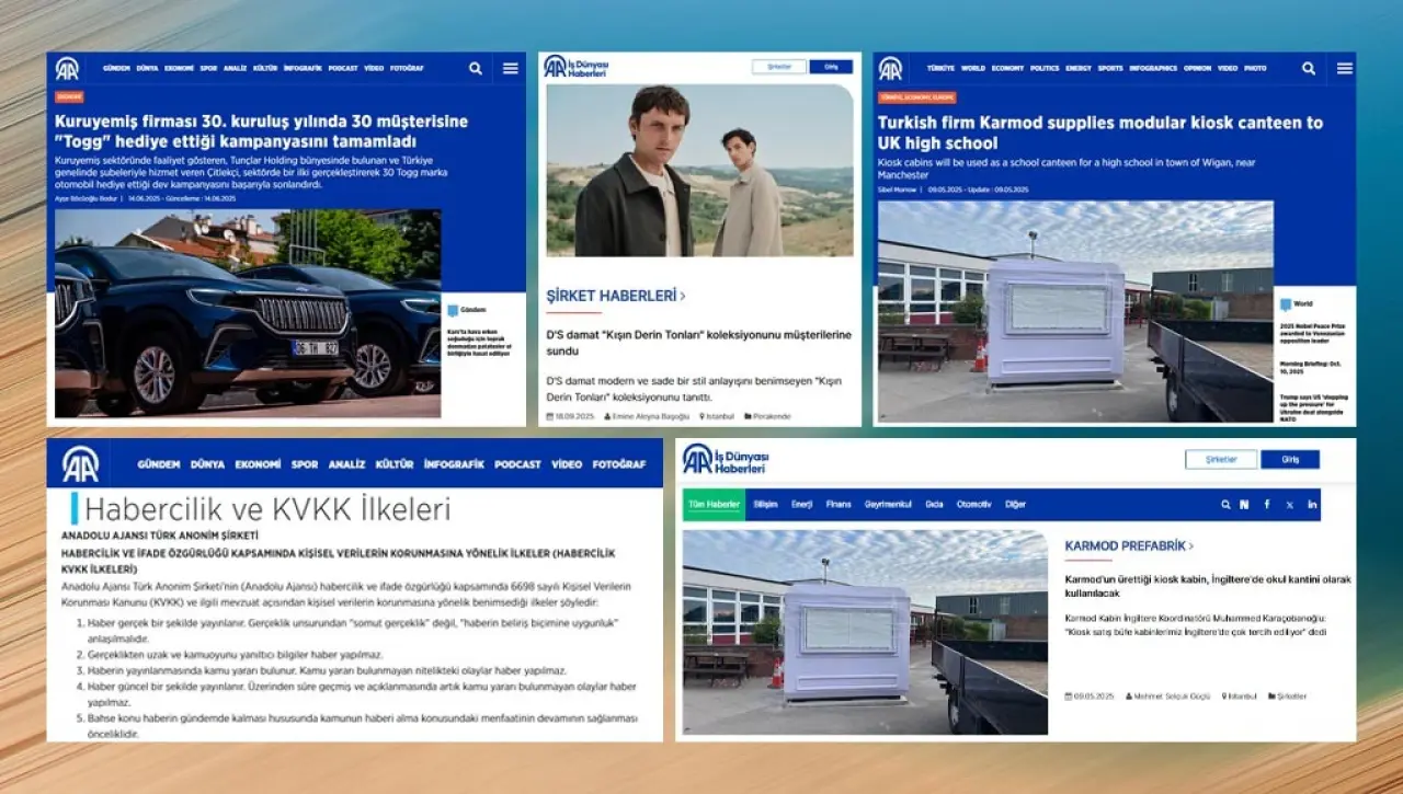 Bu bölümü tarayınca en çok karşıma çıkan da Karmod adlı bir şirketin metinleriydi. AA’da bu şirketin faaliyetleriyle ilgili her ay en az 6-7 “haber” metni yayımlanıyor. Üstelik “Karmod'un ürettiği kabin, İngiltere'de kantin olarak kullanılacak” gibi “haber”ler, AA’nın İngilizce web sitesinin “Ekonomi” bölümünde de aynen yayımlanıyor.