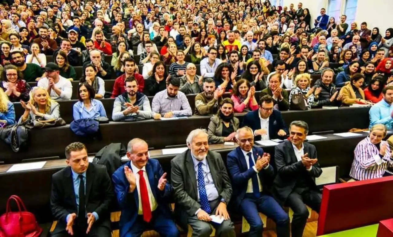 9 Nisan 2019 tarihinde saat 19.00`da 1 no`lu anfinin önü doldu... Almanların gözü elma gibi büyüdü... belki 1 000 kişi gelmişti. Mecburen, benim istedim 700 kişilik anfiyi açtılar. Salon doldu. Salonun her iki duvarının önüne etten duvar örülmüştü... İğne atsan yere düşmez. En az 100 kişi geri gitti. Salona girebilmek mümkün değildi. İlber Hocamız `` Türk-Alman İlişkileri`` üzerine konferansını Almanca olarak verdi. Konuşmanın sonunda 8-9 soru cevapladı. Soruların ardı arkası gelmiyordu... Ben birkaç soru daha aldım, ikimizin de TAŞ MEKTEP`li olmamızın hatırına güvenerek... Hissediyordum, Hocamız yorulmuştu ve biraz da kızmıştı bana...