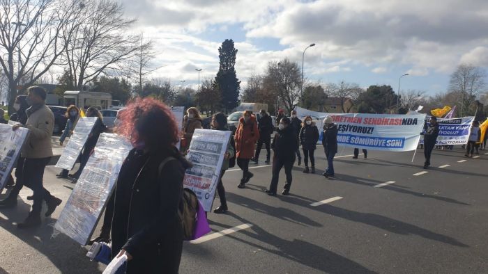 Onun için o soğukta oradayız. Özel kuruluşlarda görevli öğretmenler, emekçiler, KESK ardından ilerliyoruz. En son Tiyatro sanatçımız, Orhan Aydın’ın yumruk yediği yerden geçiyoruz, sahnede Ferhan Şensoy’u andığı sahneye ilerliyoruz.