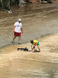 Suyun çokluğu ve azlığı ile arada kalındı ve bisikletli bir çocuk belirdi sokağın başında.