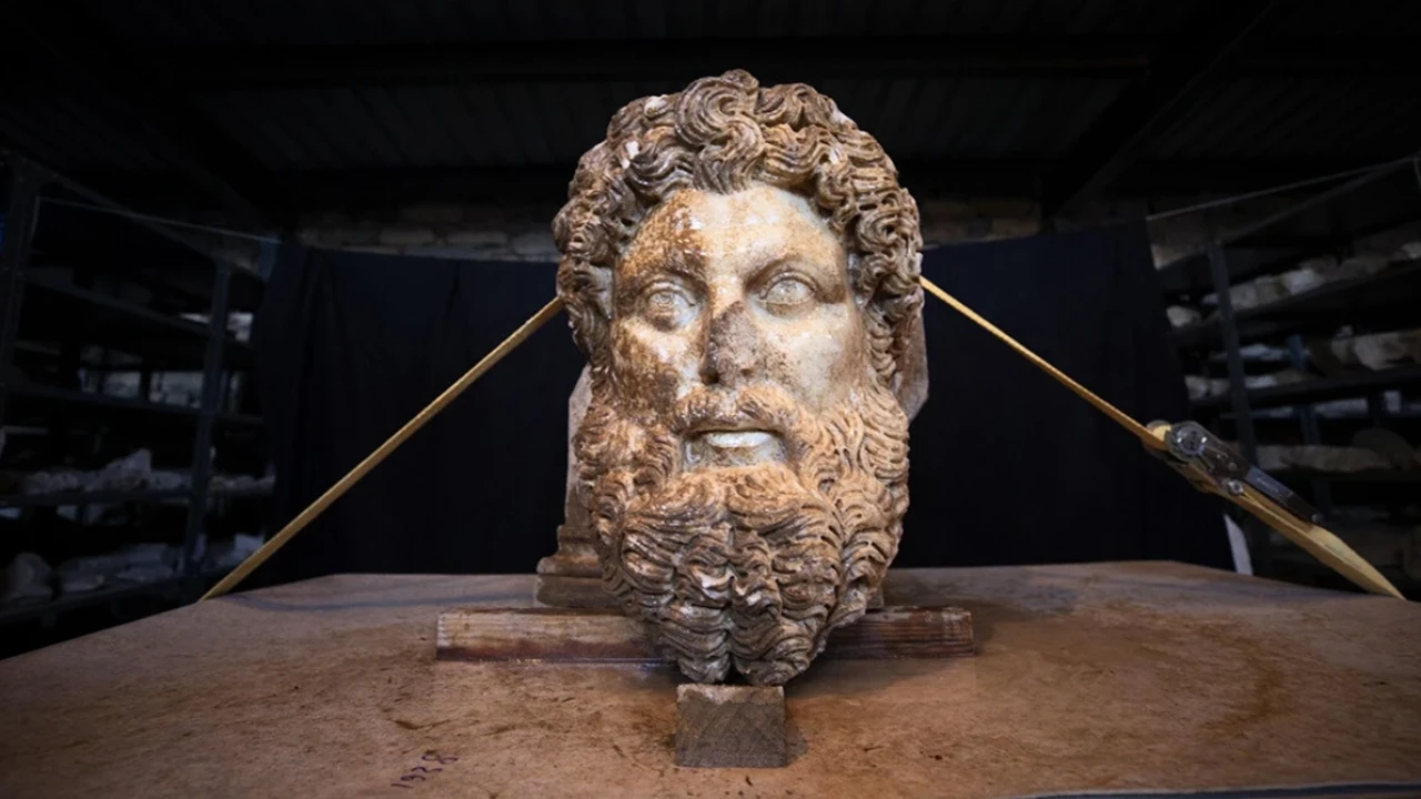 Aydın'da kazı başkanı Prof. Dr. Roland R. Smith ve ekibi, Aphrodisias Antik Kenti'nde, Aphrodite Tapınağı'nın yakınlarında Yunan mitolojisinde "tanrıların kralı" olarak bilinen Zeus'un 66 santim yüksekliğinde mermer başını keşfetti. M.S. 2 ila 3'üncü yüzyıla tarihlenen 1800 yıllık mermer baş, yangın riskini azaltmak için Aphrodite Tapınağı etrafındaki bitki örtüsü temizlenirken, tapınağın yaklaşık 50 metre batısında, yüzeye yakın bir alanda bulundu. Orta taneli Aphrodisias mermerinden tek bir blok halinde yontulan başın, mimari bir konsol ya da benzer bir yapının parçası olduğu düşünülüyor.