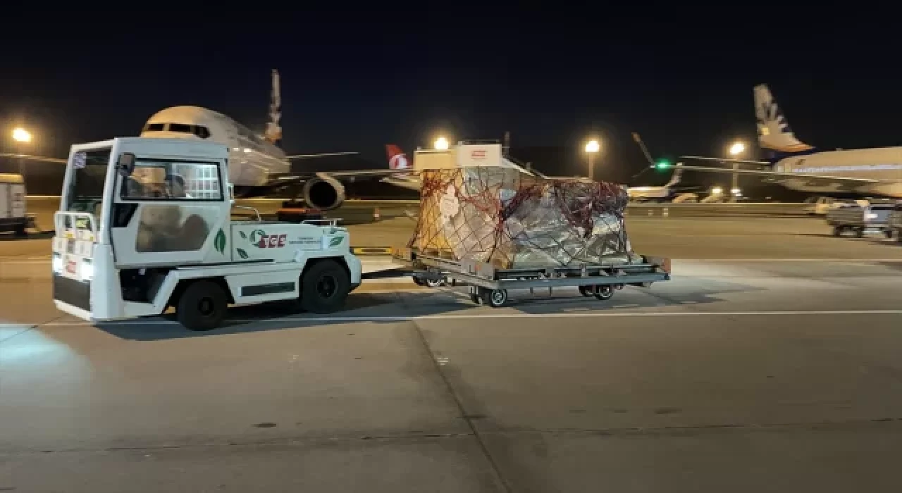 Eserlerin havalimanından müzeye nakledilmesi AA ekibince görüntülendi.
