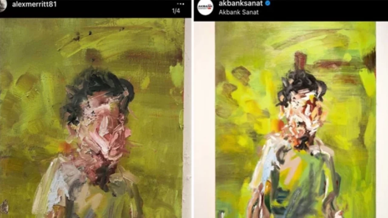 Paylaşımdaki ilk görsel, Zeynep Sude Can’ın Alex Merritt’in Instagram hesabında (@alexmeritt81) üç yıl önce paylaştığı ‘The Stranger’ isimli eserinden kopyalanmış olan işiydi. Sosyal medyadan gelen tepkiler üzerine Akbank Sanat görseli kaldırdı ve altına şu ifadeleri yazdı: