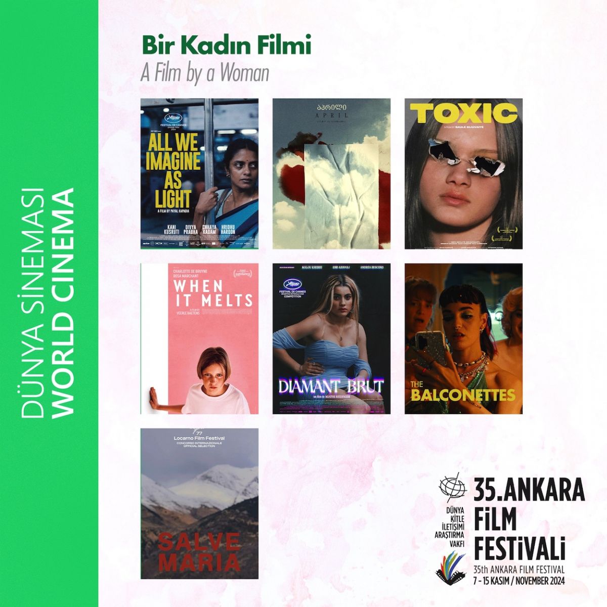 Aralarında Payal Kapadia'nın Cannes'da Büyük Jüri Ödülü'nü kazanan "Aydınlık Hayallerimiz" (All We Imagine As Light, 2024), Saulė Bliuvaitė'nin Locarno Film Festivali'nde En İyi Film seçilen "Toksik" (Toxic, 2024), Veerle Baetens'in Sundance Film Festivali'nde En İyi Kadın Oyuncu dalında Jüri Ödülü alan "Eridiğinde" (When It Melts) ve Dea Kulumbegashvili'nin Venedik Film Festivali'nde Özel Jüri Ödülü ile karşılanan "Nisan" (April, 2024) adlı filmlerinin de bulunduğu seçki, kadın yönetmenlerden 7 filmi Ankara'da ilk kez izleyiciyle buluşturacak.