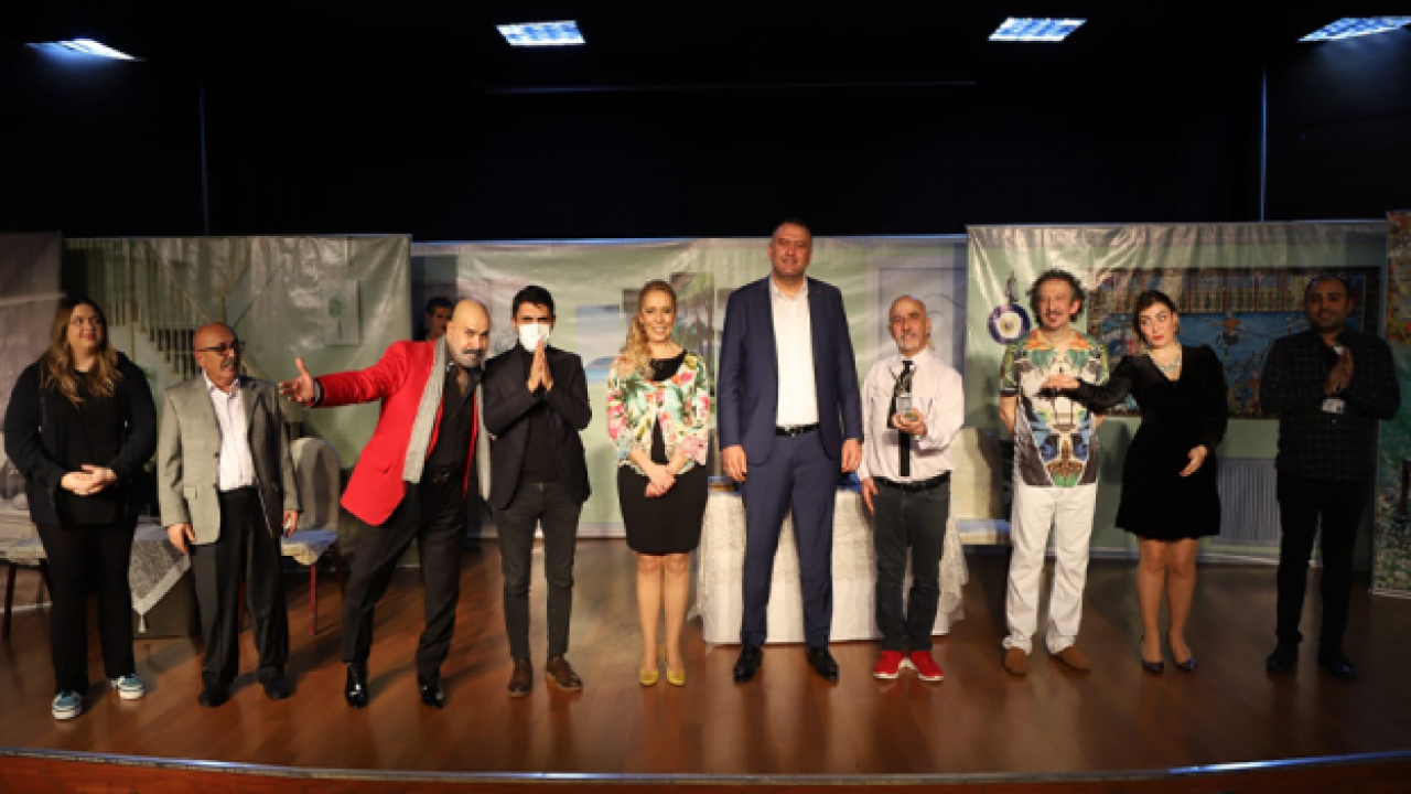 Oyunun sona ermesiyle birlikte seyircileri selamlayan oyuncular ayakta alkışlandı. Tiyatro oyununu izleyen Kartal Belediyesi Başkan Yardımcısı Adem Uçar sahneye çıkarak yönetmen ve aynı zamanda oyuncu Zülfikar Yazgaç’a Kartal heykelciği takdim etti. Kartallılara keyifli anlar yaşatan tiyatro ekibine teşekkür eden Başkan Yardımcısı Uçar, “Belediye Başkanımız Gökhan Yüksel’in selamlarını ve sevgilerini iletiyorum. Bu heykelciği tüm Kartallılar adına takdim ediyorum. Bu güzel oyundan dolayı da sizi ve tüm ekibinizi kutluyorum. Emeğinize, yüreğinize sağlık.” dedi.