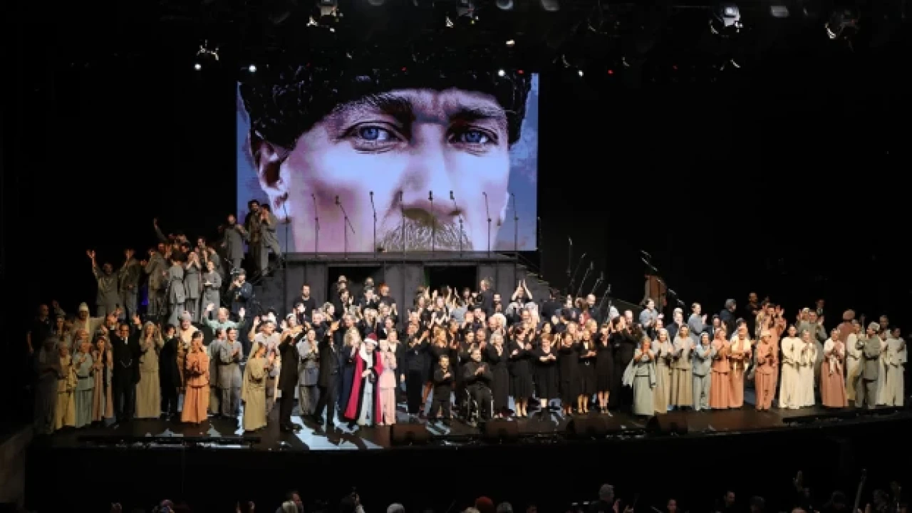 Oyuncularımızın bütün mevcuduyla sahnede olduğu bu görkemli oyunda, Milli Mücadele dönemi ve Türkiye Cumhuriyeti’nin kuruluşu, temel metinlerden yola çıkılarak anlatılıyor.