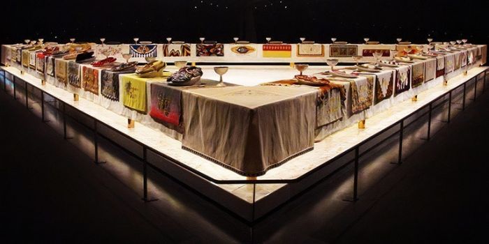 Judy Chicago’nun 1979 yılında tamamladığı eseri “Akşam Yemeği Partisi” sıklıkla eleştirildi. Feminist bir eser olan “Dinner Party” üçgen şeklindeki büyük bir masada bulunan 998 tabak ve örtüden oluşuyor. Her bir tabak tarihin akışını değiştiren kadınları temsil ediyor. Örtülerde kadınların isimleri yazarken her biri birbirinden farklı olan tabaklarda ise vajinayı andırması için tasarlanan desenler bulunuyor. Brooklyn müzesinde 5 yıl boyunca büyük bir salonda sergilenen eserde yalnızca bir erkeğin ismi istisnai olarak bulunuyor. Erkek Yunan heykeltıraş Kresilas’ın ismi Cresilla ismine dönüştürülüp altın harflerle esere eklenmiş. Eser çağdaş İngiliz sanatçı Cornelia Parker tarafından vajina figürünün kontrolsüzce öne çıkarıldığını ve tarihi değiştiren kadınlardan çok sanatçı Judy Chicago’nun egosunu yücelttiği gerekçesiyle sertçe eleştirilmiş. Parker ayrıca kadınları vajinaya indirgediği için de Chicago’yu eleştirmiş.