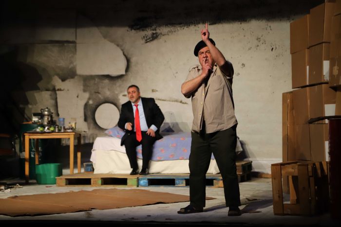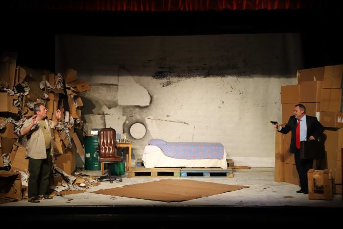 Coşkun Irmak’ın kaleme aldığı, Nihat Nadi Ülger’in yönetmenliğini üstlendiği tek perdelik trajikomik oyun Kartal Sanat Tiyatrosu’nda sahne aldı. Oyuncular Emin Maltepe ve Nihat Nadi Ülger’in etkileyici performansı sanatseverlerden büyük alkış topladı. Salona girişlerde pandemi kurallarına uygun olarak maske ve mesafeye önem gösterildi.