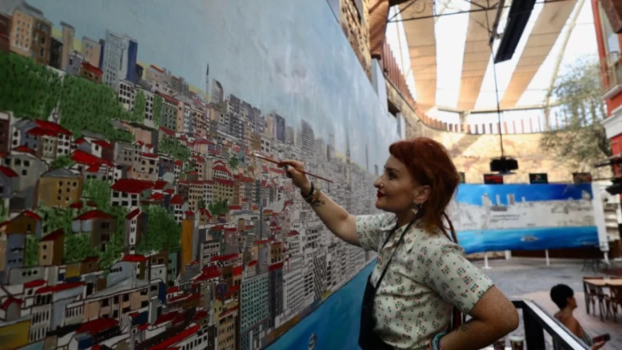 Ressam Alev Özas, Cumhuriyet'in 100. yılına yüksekliği 2.90 metre, uzunluğu 50 metre olan panoramik, dev bir İstanbul resmi armağan ediyor.