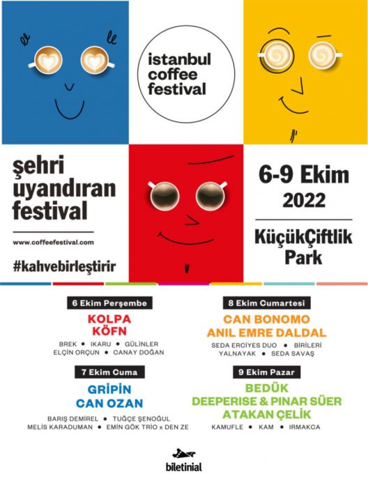 İzmir’in en sevilen etkinliklerinden biri olan İzmir Coffee Festival bu sene 6. kez kahve severler ile buluşuyor.  İzmir Arena’da 7-8-9 Ekim tarihlerinde düzenlenecek İzmir Coffee Festival’de kahveye ilişkin bilgilendirici workshoplar ve söyleşiler gerçekleştirilirken, ünlü isimlerde konserleriyle kahve keyfini perçinleyecek. Eğlenceli sahne şovların yapılıp ünlü isimlerin konser vereceği festivalin biletleri Türkiye’nin teknoloji odaklı kültür, sanat, spor ve eğlence platformu www.biletininal.com’da kahve tutkunlarını bekliyor.