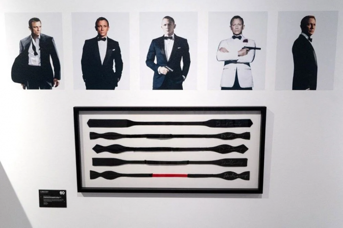 Bond filminde kullanılan Land Rover arabalar ile motosiklet, saatler ve takım elbiseler de müzayedeye çıkarıldı.