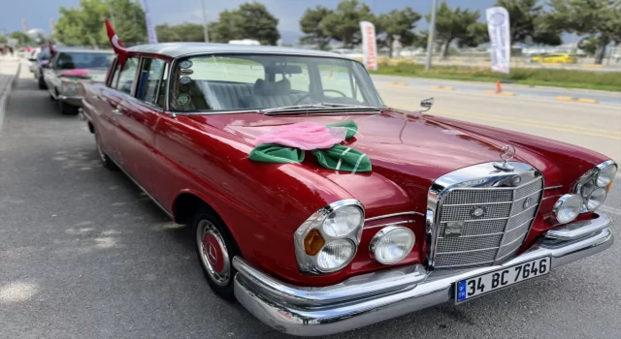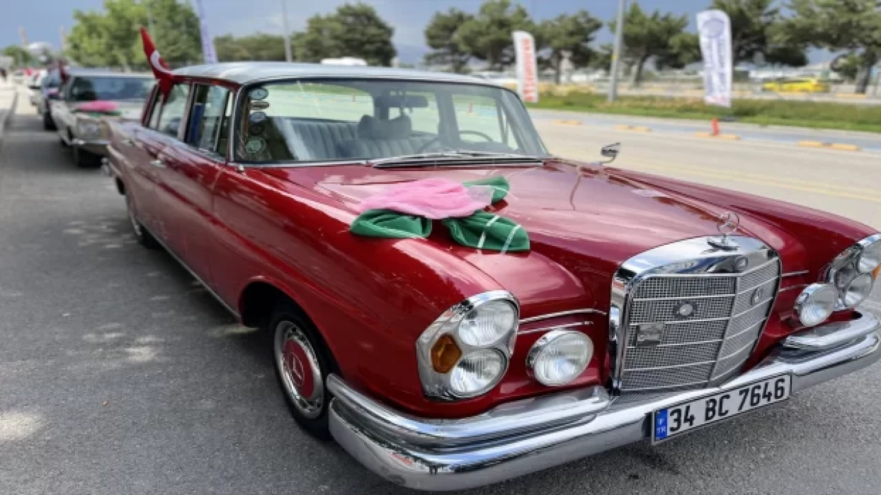 32 klasik otomobilin katıldığı konvoya vatandaşlar da araçlarıyla eşlik etti, fotoğraf çektirdi.