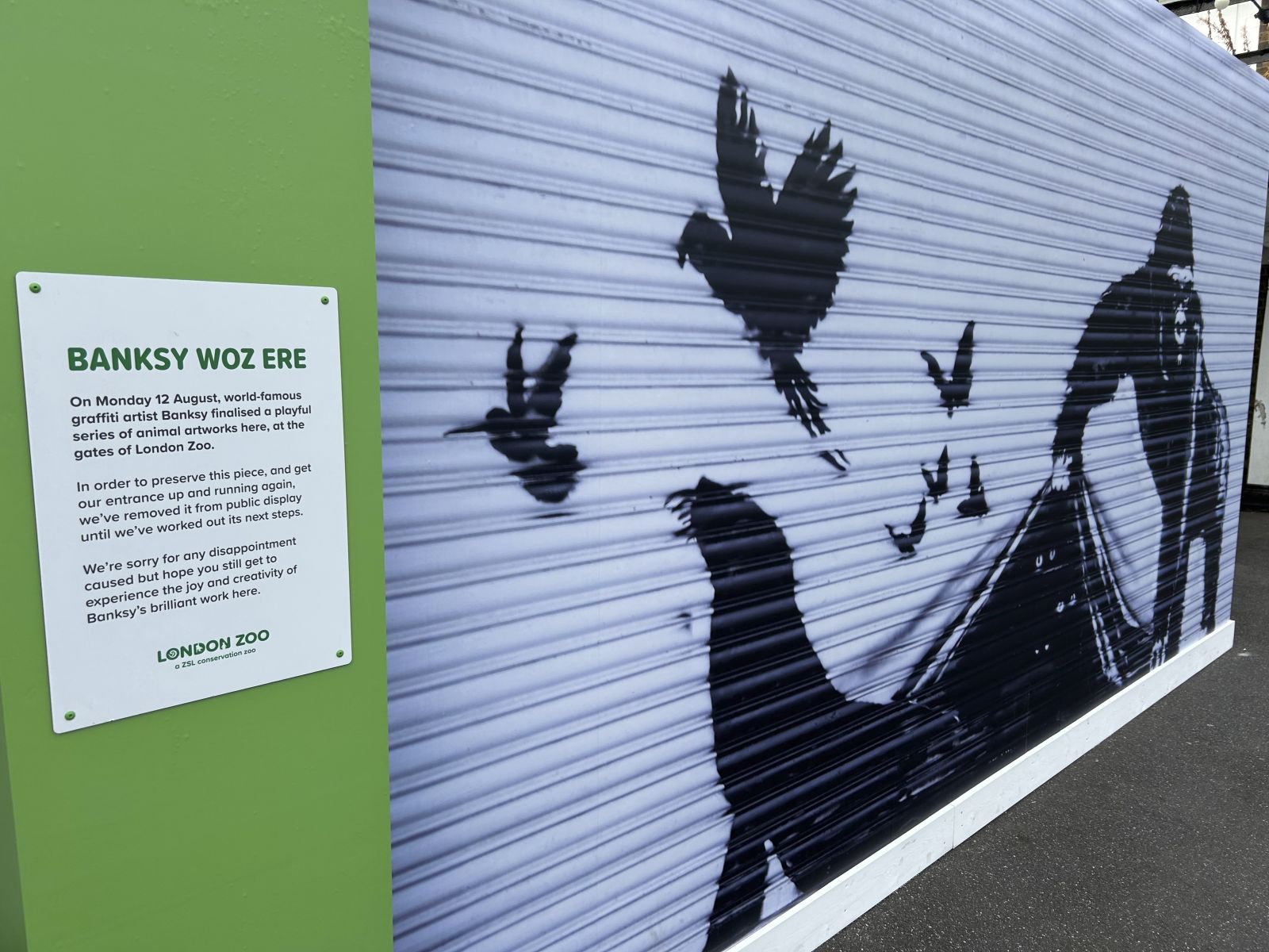 Hayvanat bahçesinin baş operasyon görevlisi Kathryn England, Banksy'ye sanat eserini hayvanat bahçesinin kepengine bastığı için teşekkür etti ve bunu "Tarihimizde uygun şekilde korumak istediğimiz önemli bir an" olarak nitelendirdi. England, "Bu sanat eserinin birçok kişiye yaşattığı sevinçten dolayı çok mutluyuz, ama en önemlisi, yaban hayatını ön plana çıkardığı için Banksy'ye inanılmaz derecede minnettarız" diye ekledi.