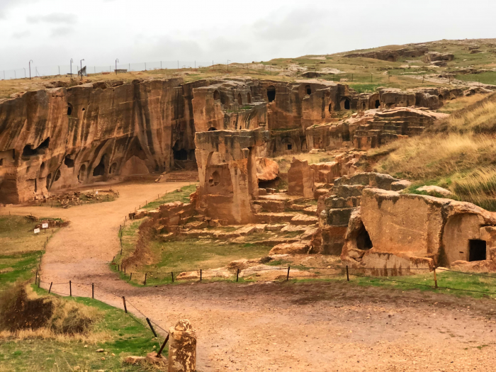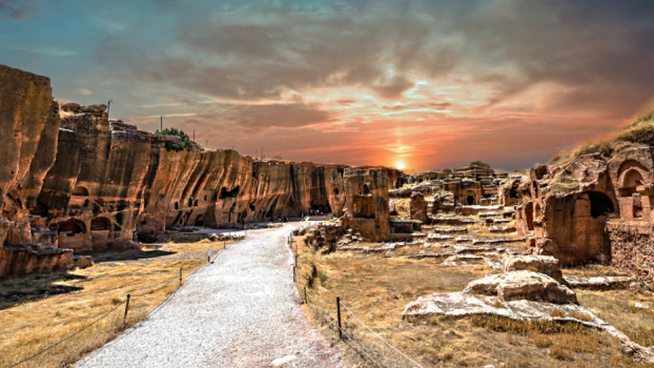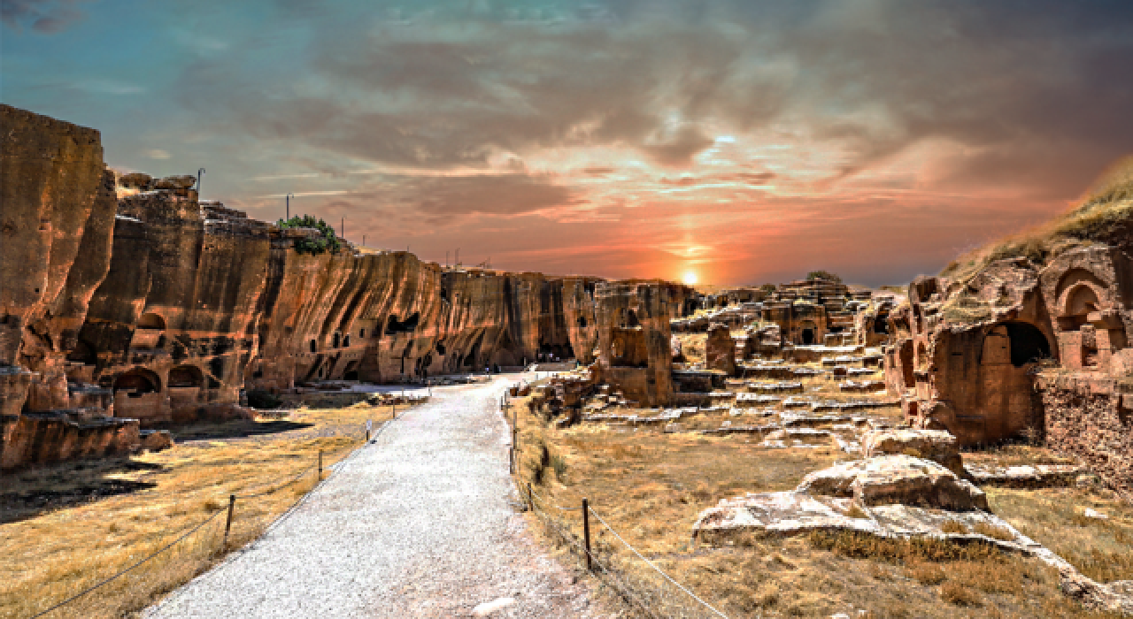 Kaya nekropol alanında, boyutları, planı ve iç düzenlemesiyle en dikkat çeken yapı, tamamen ana kayaya oyularak düzenlenmiş olan üç katlı mezar yapısıdır. Kuzey-güney doğrultusunda dikdörtgene yakın planlı yapının üst katı; batı, güney ve doğu kenarlarda devam eden bir koridor/balkon şeklinde düzenlenmiştir. Yapının kuzeyindeki anıtsal girişin alınlığında bitkisel süslemeler ile birlikte dinsel sahneler işlenmiştir. Kutsal kitaplarda “ruhlara nefes verilmesi ve yeniden dirilişin” canlandırıldığı Ezekiel (Ölüleri dirilten Peygamber) sahnesinin işlendiği bu galeri mezarın, 573 istilasından sonra Sasaniler tarafından savaşta öldürülen Doğu Roma halkına ithafen, 591’de sürgünden dönen Doğu Romalılarca yapıldığı düşünülmektedir. 2009 yılında yapılan kazılarda, yapının alt katında yüzlerce insana ait kemikler açığa çıkarılmış ve bu insanların Ezekiel’in mucizesindeki gibi yeniden dirilecekleri gün için bu mezarda toplandıkları belirlenmiştir.