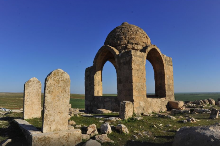 Kentin doğu kısmında yer alan tepede İslami Dönemlere ait geniş bir alanda mezarlık yer almaktadır. Mezarlık alanın M.S. 12. yüzyıldan itibaren kullanıldığı düşünülmektedir. Yine aynı tepe üzerinde Düzgün kesme taştan, baldaken tarzında yapılan, 4 ayak üzeri kubbe ile örtülü türbe yer almaktadır. Kime ait olduğu ve ne zaman yapıldığına dair herhangi bir yazılı belge mevcut olmamakla beraber, yapının üslubu itibariyle 14- 15. yüzyıl eseri olduğu düşünülmektedir.