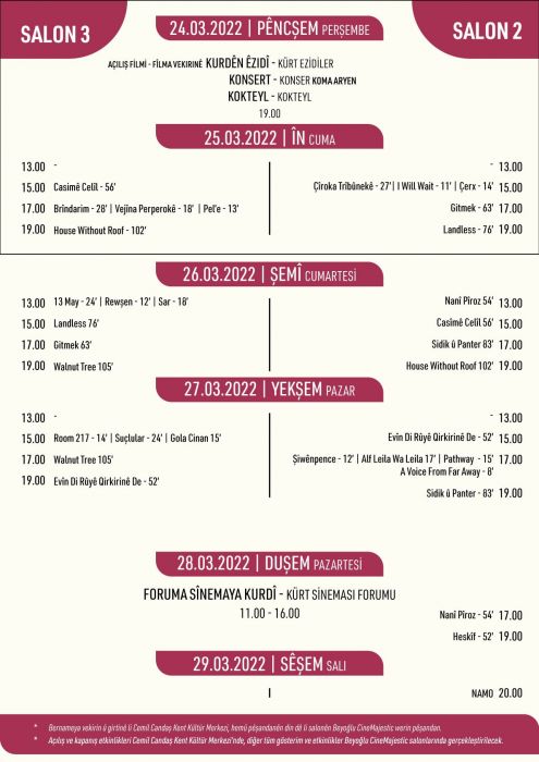 İstanbul Kürt Film Festivali kapsamında, programın tüm gösterimi ise, Beyoğlu CineMajestic ‘de olacak.