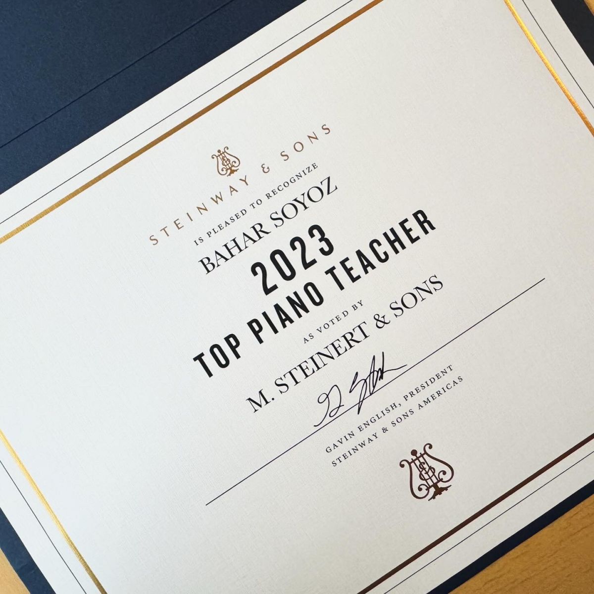 Piyanist, eğitmen Bahar Soyöz, prestijli müzik şirketi Steinway & Sons tarafından ‘2023 Top Piano Teacher’ ödülünü kazandı.