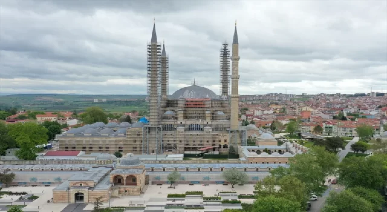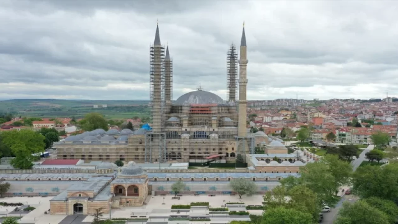 Edirne Valisi H. Kürşat Kırbıyık, gazetecilere, Selimiye Camisi'nin kapsamlı restorasyon çalışmalarının sürdüğünü söyledi.
