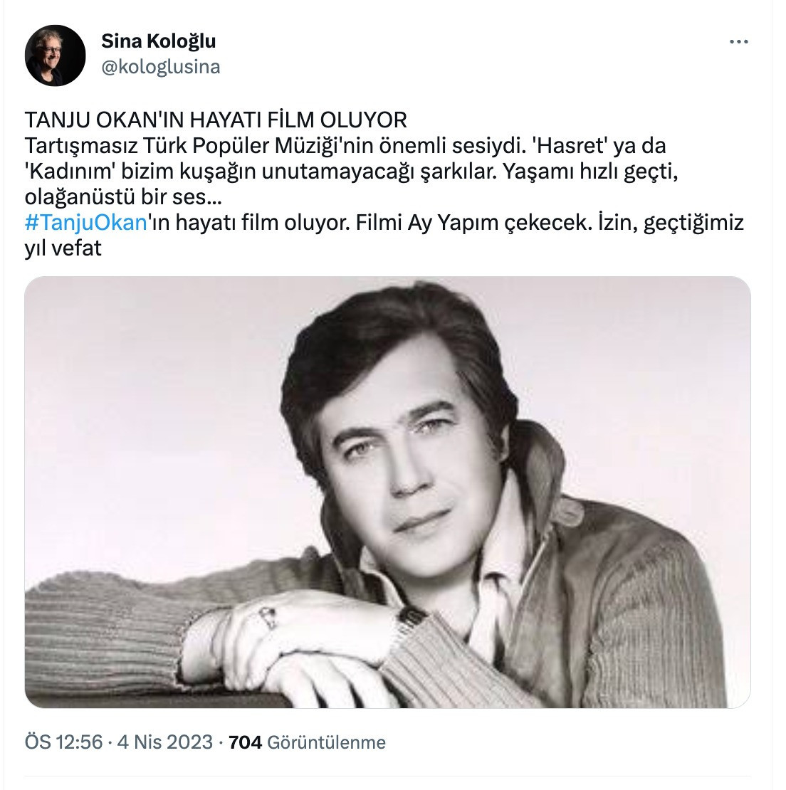 Sina Koloğlu, Tanju Okan'ın hayatının film olacağını duyurdu. Filmi Ay Yapım çekecek.