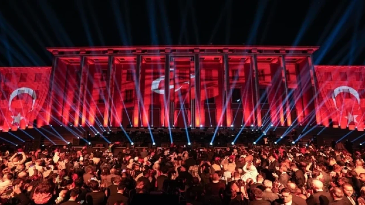 Konsere, AK Parti İstanbul Milletvekili ve besteci Yücel Arzen Hacıoğulları ile 150 kişilik Türkiye Yüzyılı Orkestra ve Korosu da eşlik etti. Konser, Mehmet Akif Ersoy'un Çanakkale Şehitlerine şiiriyle başladı ve Yücel Hacıoğulları’nın özel olarak bestelediği “23 Nisan Marşı” ilk kez 4 çocuk solist eşliğinde seslendirildi. Marşı seslendiren çocuklardan biri Filistin atkısı açtı. TBMM Başkanı Kurtulmuş, Yücel Arzen Hacıoğullarına çiçek takdim etti. Konserin ardından 1071'den 2024'e kadar geçen zamanı anlatan bir ışık ve mapping gösterisi yapıldı. Gösteri, Meclis ana binasının yüzeyine yansıtılarak 8 dakika sürdü.