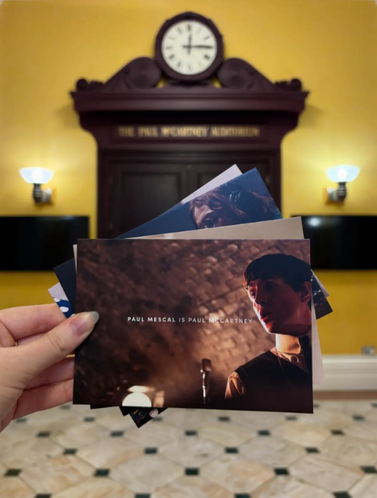 Alışılmışın dışında bir tanıtım stratejisi izleyen stüdyo, ilk görselleri dijital ortam yerine fiziksel olarak paylaştı. John Lennon, Paul McCartney, George Harrison ve Ringo Starr’ı canlandıran oyuncuların karakter kostümleriyle yer aldığı görseller, kartpostal formatında basılarak Liverpool Institute of Performing Arts kampüsünde farklı noktalara gizlendi. Okulun resmi sosyal medya hesabından yapılan çağrıyla öğrenciler kartpostalları bulmaya davet edildi.