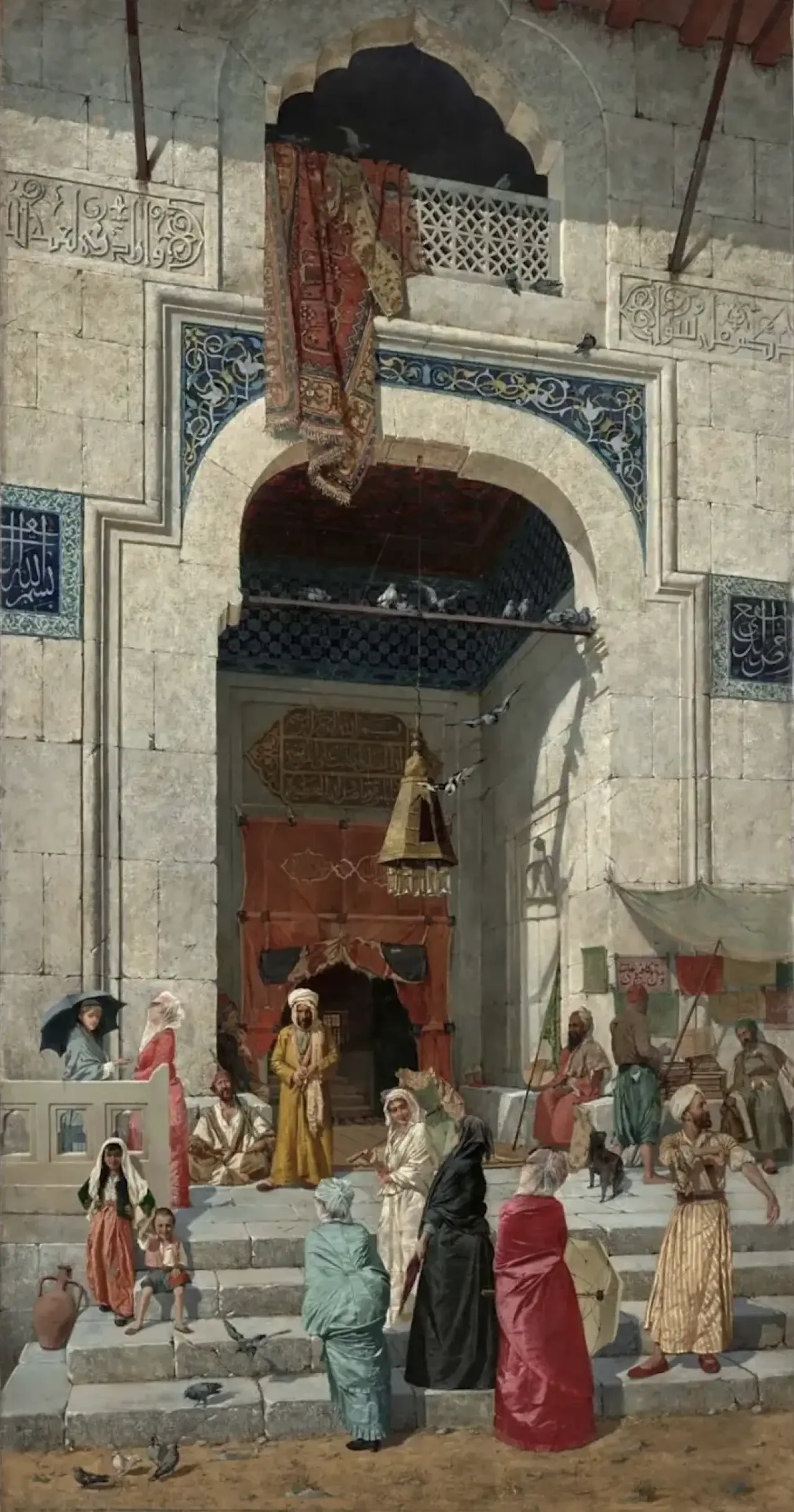 Dünyaca ünlü Türk ressam Osman Hamdi Bey'in en ihtişamlı çalışmalarından biri olarak kabul edilen "Cami Kapısında" adlı tablosu, Londra merkezli Bonhams Müzayede Evi tarafından düzenlenecek olan "19. Yüzyıl Resimleri ve İngiliz İzlenimci Sanatı" başlıklı açık artırmada satışa sunuluyor. Sanatçının 1891 yılında imzasını attığı bu devasa çalışma, 1895 yılında bizzat Pennsylvania Üniversitesi tarafından sanatçıdan satın alınmıştı. O tarihten bu yana hiçbir satış işlemine konu olmayan eser, 131 yılın ardından ilk kez piyasaya çıkıyor.