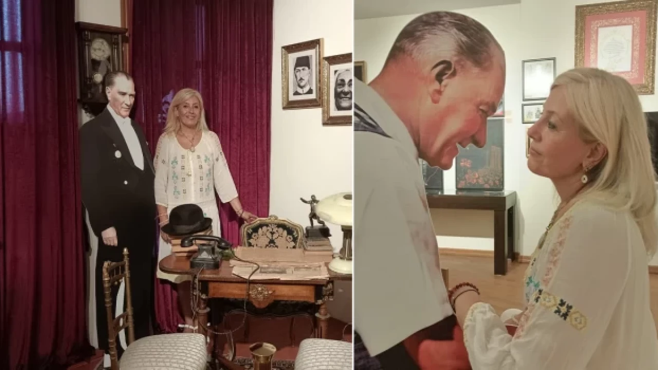 Açılışın önemli isimlerinden sanatçı aynı zamanda konuşmacı Gülsen Tuncer’di. Madam Corınne hanıma, farklı cephelerden Atatürk tarafından yazılmış mektupları o duygu dolu sesi ile okuyan Gülsen Tuncer hanım herkesi son derece duygulandırdı.