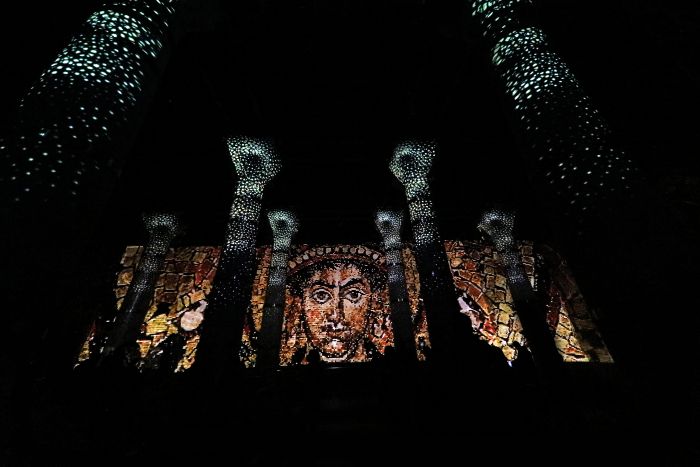İstanbul’un kolektif hafızası ve tarihi katmanlarını yeni bir dille sunan bir diğer bölümde, Bizans ve Osmanlı İmparatorlukları dönemleri dijital bir yorumla sarnıç duvarlarında hayat buluyor. Bu yorumlara ikonalar, çini sanatından örnekler eşlik ediyor.
