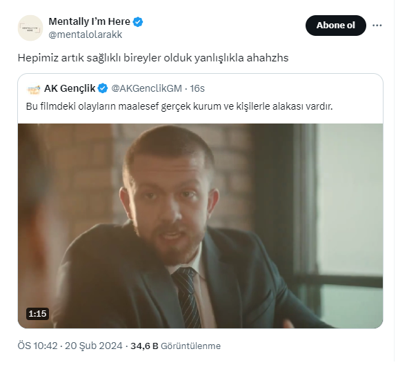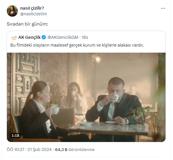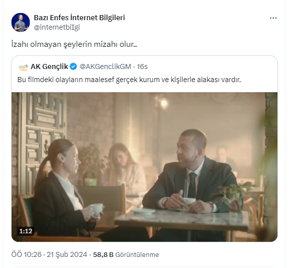 AK Parti Gençlik Kolları Resmi X (Twitter) hesabı akşam saatlerinde bir reklam filmi yayınladı.