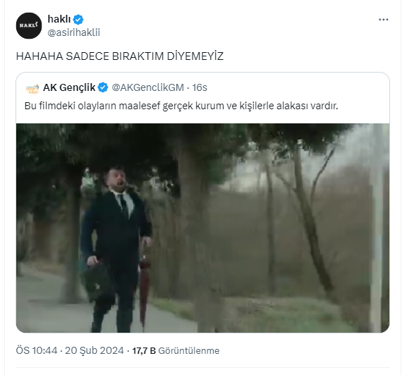 Reklam filmini paylaşan, onlarca siyasi eksenli - iktidar yanlısı sosyal medya hesabı zaten mevcut.