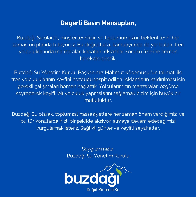 Yüksek Hızlı Tren'de (YHT) seyahat eden bir yolcu trendeki reklam kaplamalarından duyduğu rahatsızlığı dile getirmişti. Reklamı veren firma Buzdağı Su ise vatandaşın tepkisine kayıtsız kalmayarak hızlı bir şekilde aksiyon aldı. Bu, örneğini sık görebileceğimiz bir durum muydu?