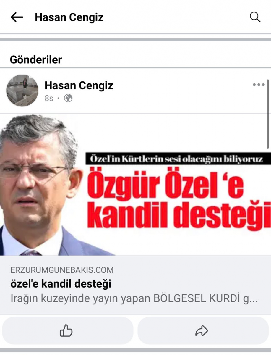 Kılıçdaroğlu’nun danışmanı Hasan Cengiz bir haberi, birçok sosyal medya platformunda paylaşıyor.