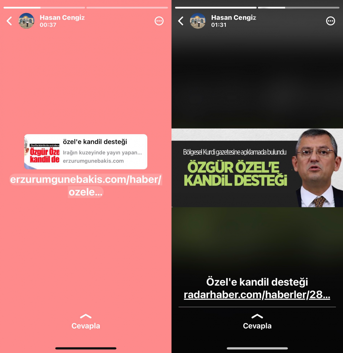 Haberi Kılıçdaroğlu’nun danışmanı Hasan Cengiz, Whatsapp hesabı hikayesinden iki defa paylaşırken ayrıca kişilere özel olarak da iletmiş.