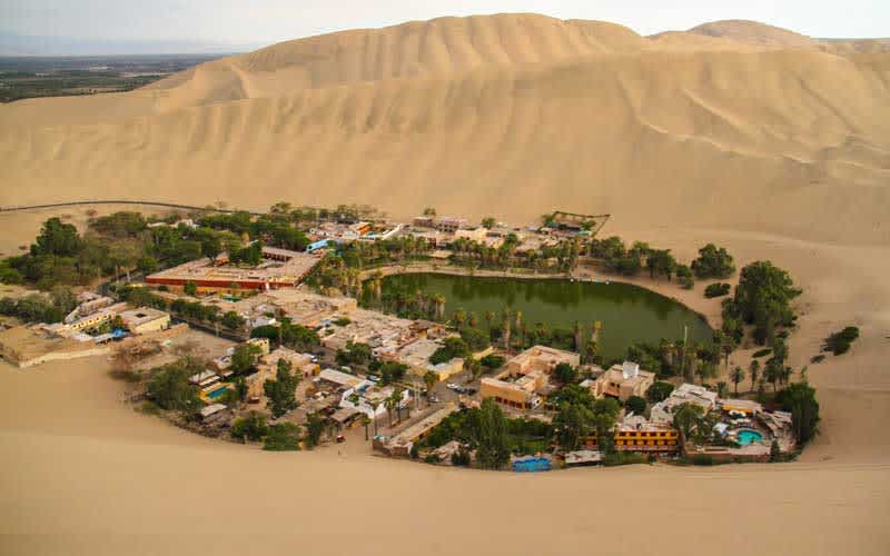 Peru‘nun güneybatısında bir çöl ve çölün ortasındaki doğal gölün etrafında kurulan Huacachina Köyü, muhteşem bir çöl deneyimi sunuyor. Birçok efsane ve hikayeye konu olan kum tepelerinde ATV ile safari, jeep eşliğinde tur gibi aktiviteler gerçekleştiriliyor. Kum tepelerinin görselliği insanı kendine hayran bırakıyor.