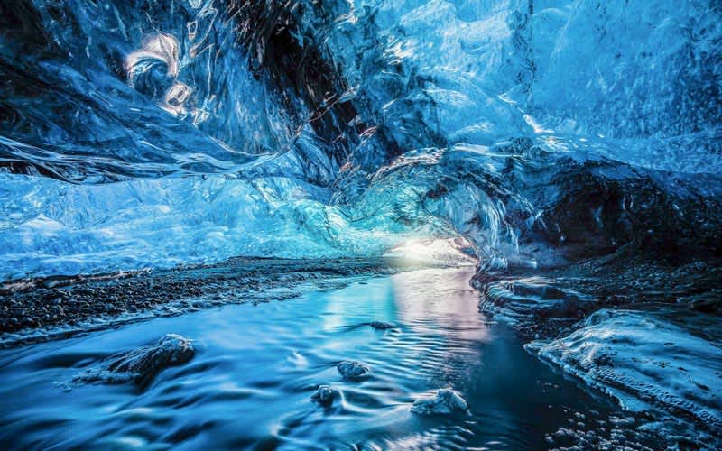 İzlanda‘nın Skaftafell Milli Parkı’nda yer alan Kristal Mağara (Crystal Cave), binlerce yıllık buz oluşumlarının güneş ışığıyla birlikte renkten renge girdiği uçsuz bucaksız derinlikte yapı. Her yıl binlerce insanın ziyaret ettiği mağarada, gerçeklik duygusundan uzaklaşmak mümkün.