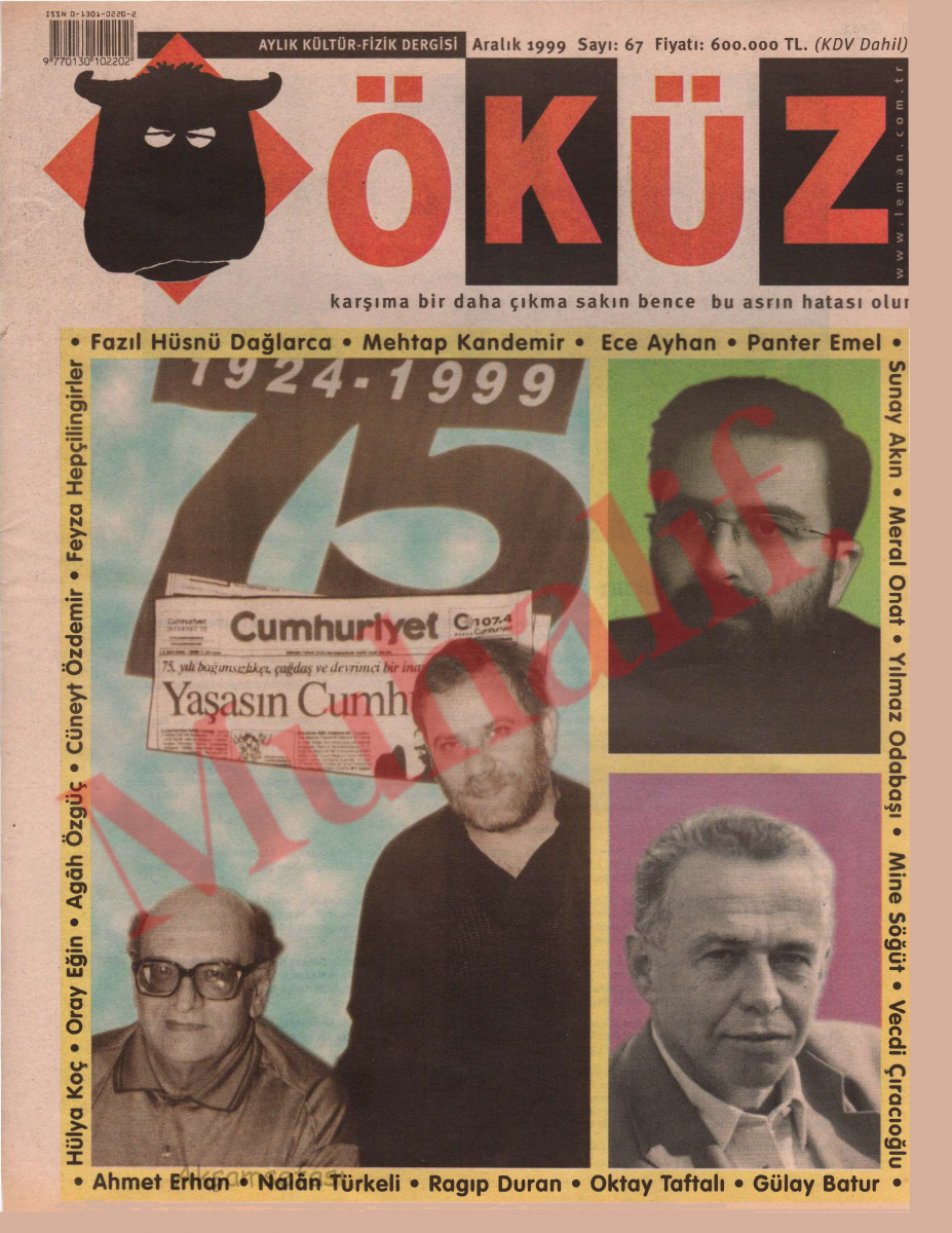 Öküz isimli kültür sanat ( kendi deyimleriyle kültür-fizik) dergisinin ilk sayısı 10 Mayıs 1996 tarihinde yayınlanmış. İlk 31 sayı haftalık, sonrasında ise aylık olarak yayımlanan ve 90 sayı olarak çıkan dergi 2001 yılının Kasım ayında yayın hayatını sonlandırmıştır.