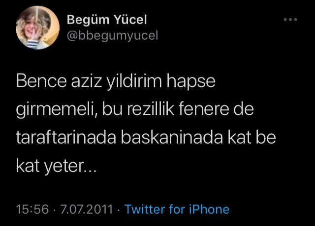 “Bence Aziz Yıldırım hapse girmemeli, bu rezillik Fenere de taraftarına da başkanına da kat be kat yeter…” ifadelerine imza atıyor.