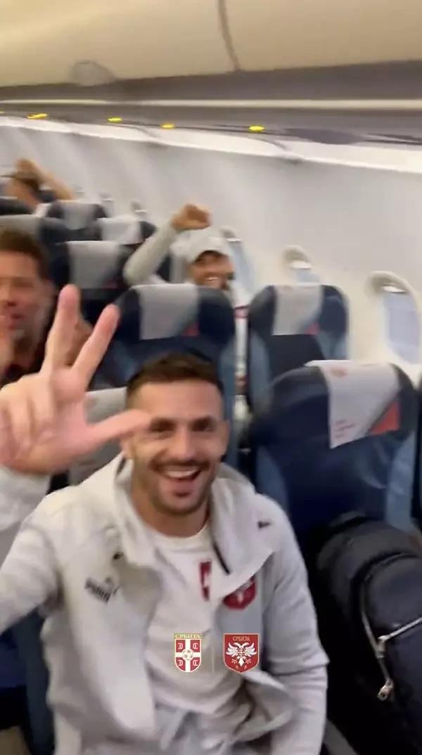 100. milli maçına çıkan Sırp futbolcu dönüş uçağındaki sevinç gösterisinde Sırpların ulusal sembollerinden Çetnik selamını verdiği görüldü.