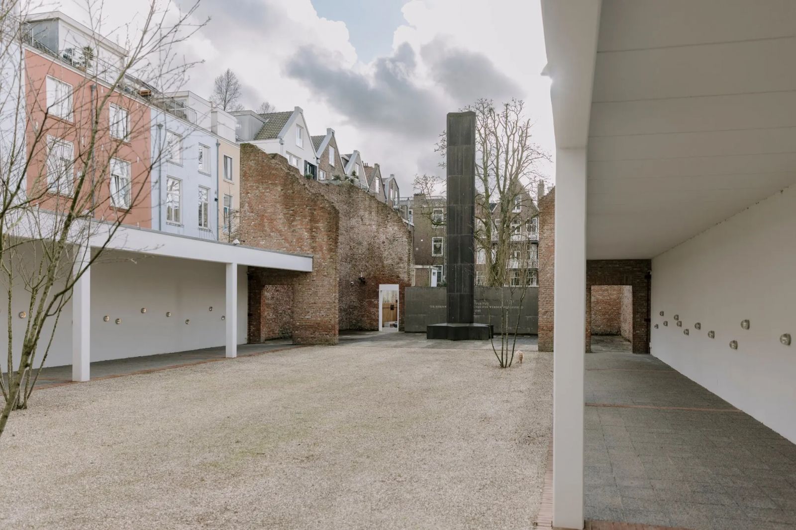 Bina acı tarihe şahitlik eden bir yerde bulunuyor. Nazilerin tehcir merkezine dönüştürdüğü tiyatro salonunun karşısında ve Yahudi çocukların toplama kamplarına gönderilmeden önce tutulduğu bir kreşin hemen yanında.