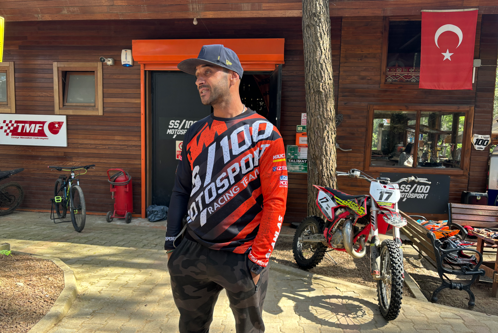 “En küçük yaşta bu spordan başlayabiliyorsunuz. Bu sporu yapabilmek için kondisyonunuzun da çok güçlü olması gerekir. Devamlı spor yapıyor olmanız lazım. Bu motosiklete binebilmek için, özel bir çizme; ayağınız sert darbelere karşı güçlü, sağlam dursun incinmesin kırılmasın diye, koruyucu bir pantolon; düştüğünüzde toprak zeminde bacaklarınız zarar görmesin diye, giyimi kolay, esnek, içinde rahat edebileceğiniz ve koruması olan.