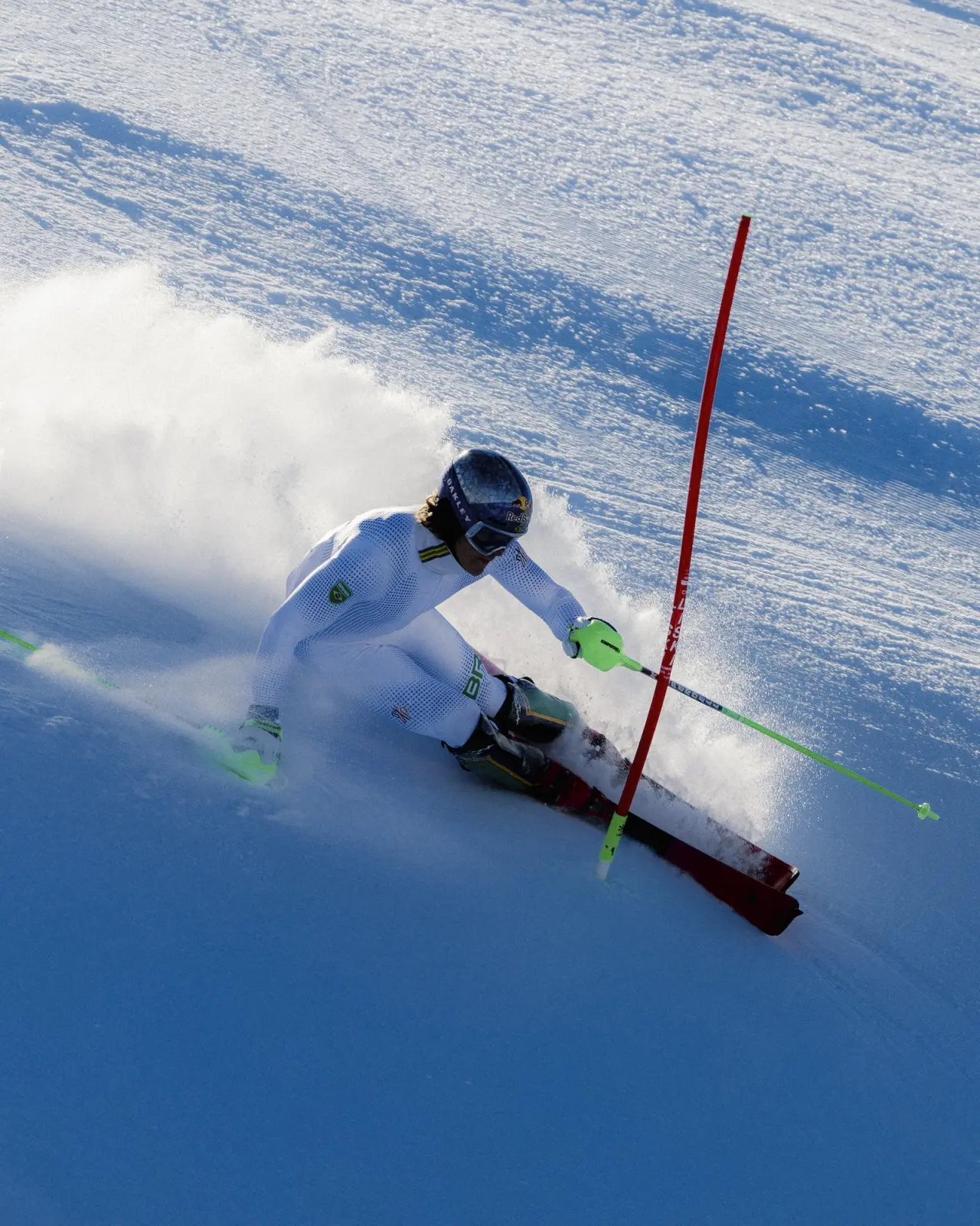 Yüksek performanslı yalıtım, hassas terzilik ve kayak esintili şıklığı, fildişi ve beyaz renklerdeki kapitone kuş tüyü kabanlar ve teknik parkalarla buluşturan marka; ayrıca Brezilyalı sporcu Pinheiro Braathen ile iş birliği içinde geliştirdiği, yıldız vurgulu şık bir yarış tulumu da tasarladı.
