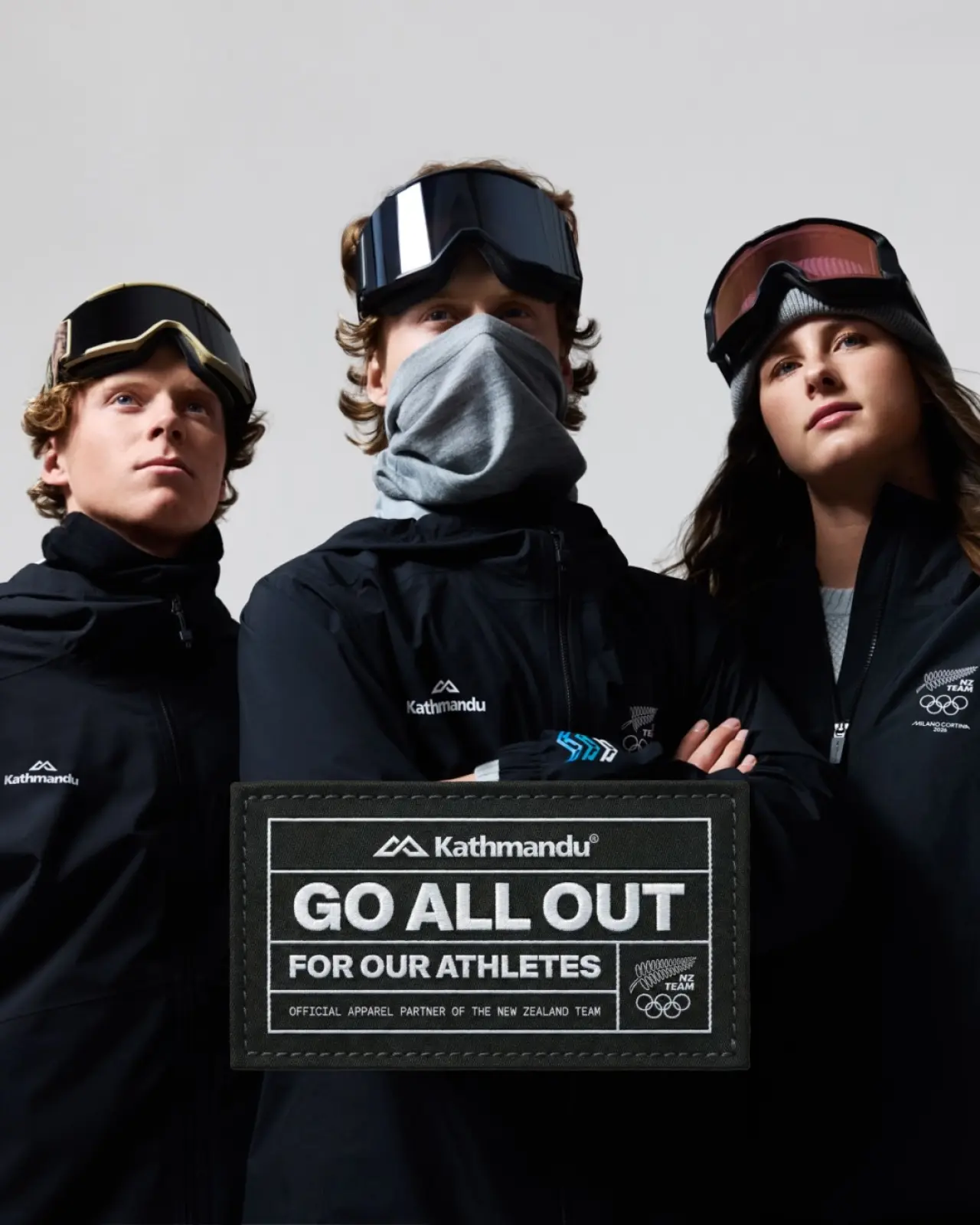 Beyaz kar üzerinde dikkat çeken, Yeni Zelanda'lı sporcuların açılış töreninde giydiği tamamen siyah ceketlerde, destekçilerinden gelen cesaretlendirici mesajları toplayan dijital bir platform olan Go All Out'a bağlantı veren, göze çarpmayan bir QR kod rozeti bulunuyor.