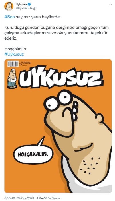 Bugüne geldiğimizde ise dergi yayın hayatına son vereceğini sosyal medya üzerinden yaptığı bir paylaşımla açıkladı. Dün yapılan paylaşımda, "Son sayımız yarın bayilerde. Kurulduğu günden bugüne dergimize emeği geçen tüm çalışma arkadaşlarımıza ve okuyucularımıza teşekkür ederiz. Hoşçakalın" denildi.