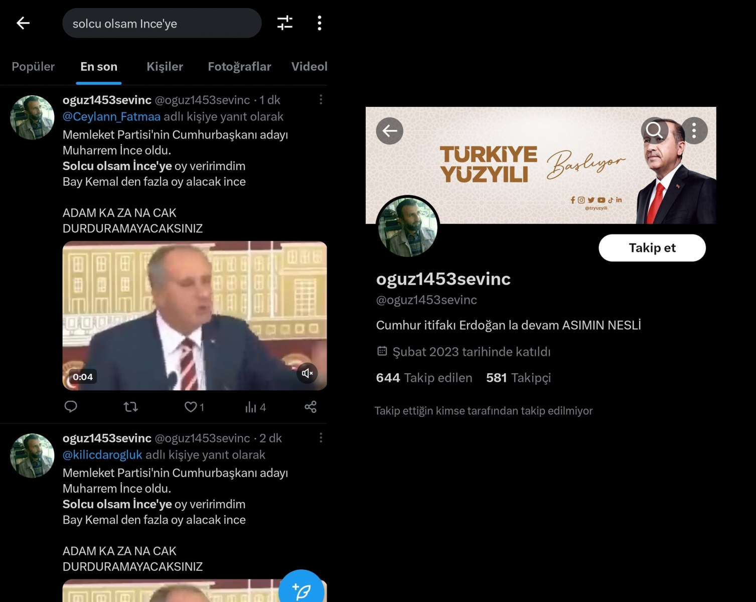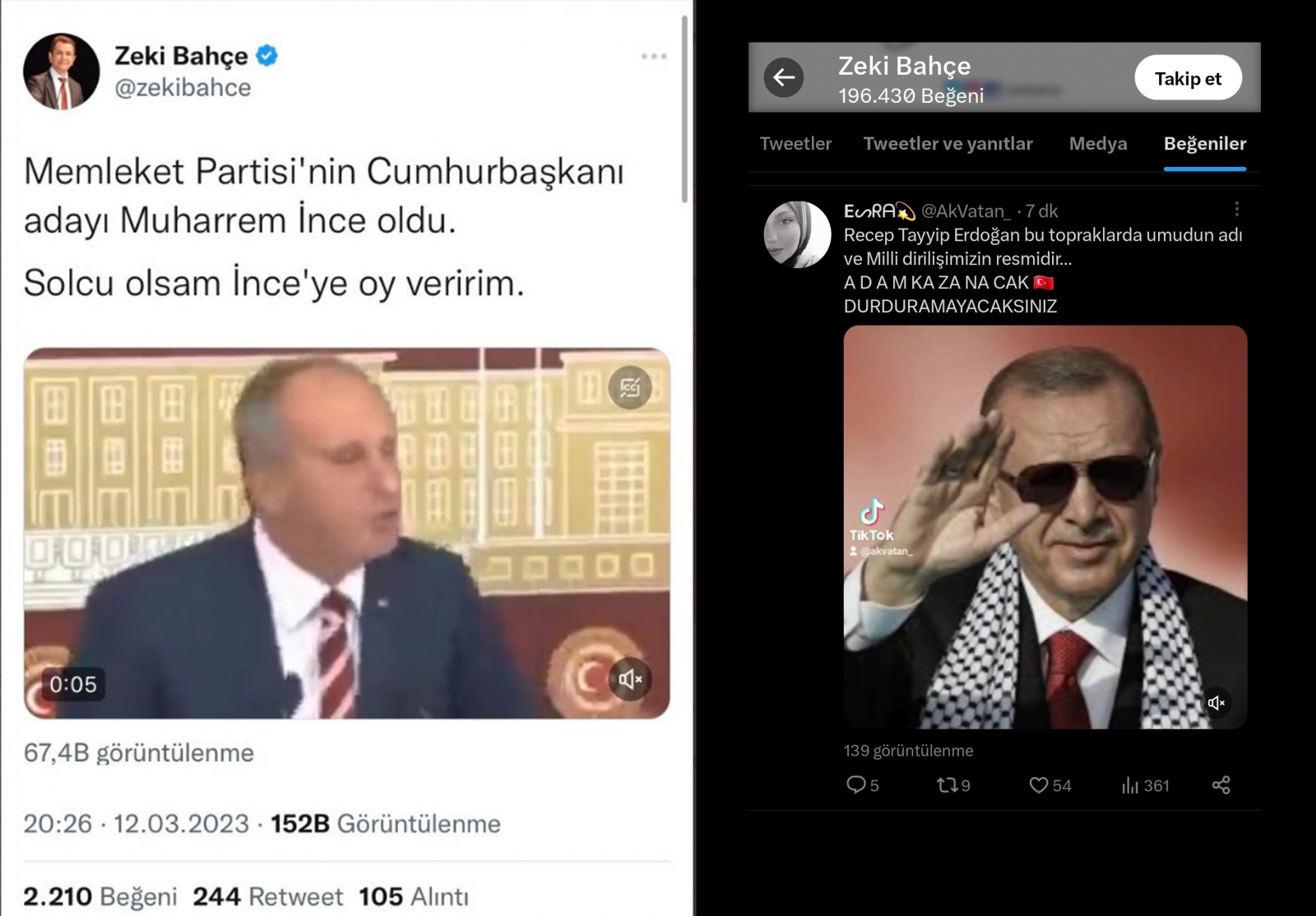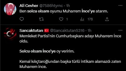 AKP’li büyük fenomen troll hesaplar bile dahil olduğu, “Solcu olsam Muharrem İnce’ye oy verirdim” cümlesi ile paylaşımlar yapıldı. Tweeti paylaşan kişilerin beğenilerinde Cumhurbaşkanı Erdoğan isminin yer alması da dikkatleri çekti.