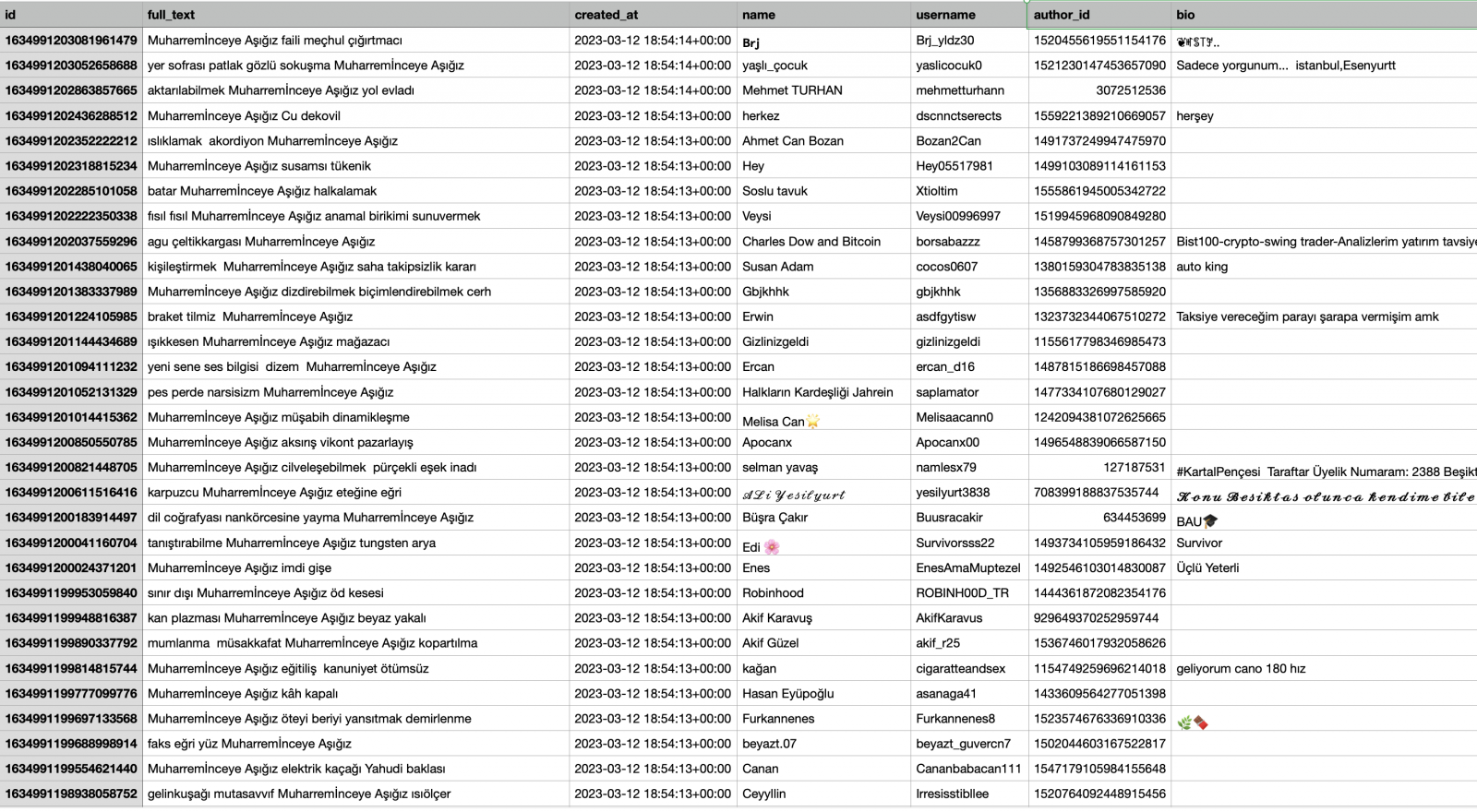 Hesaba göre aynı dakika içerisinde ‘Muharremİnceye Aşığız’ başlığının kullanıldığı yüzlerce tweet atıldı. Öncesinde ise aynı kelimelerin geçtiği herhangi bir tweet atılmamıştı.