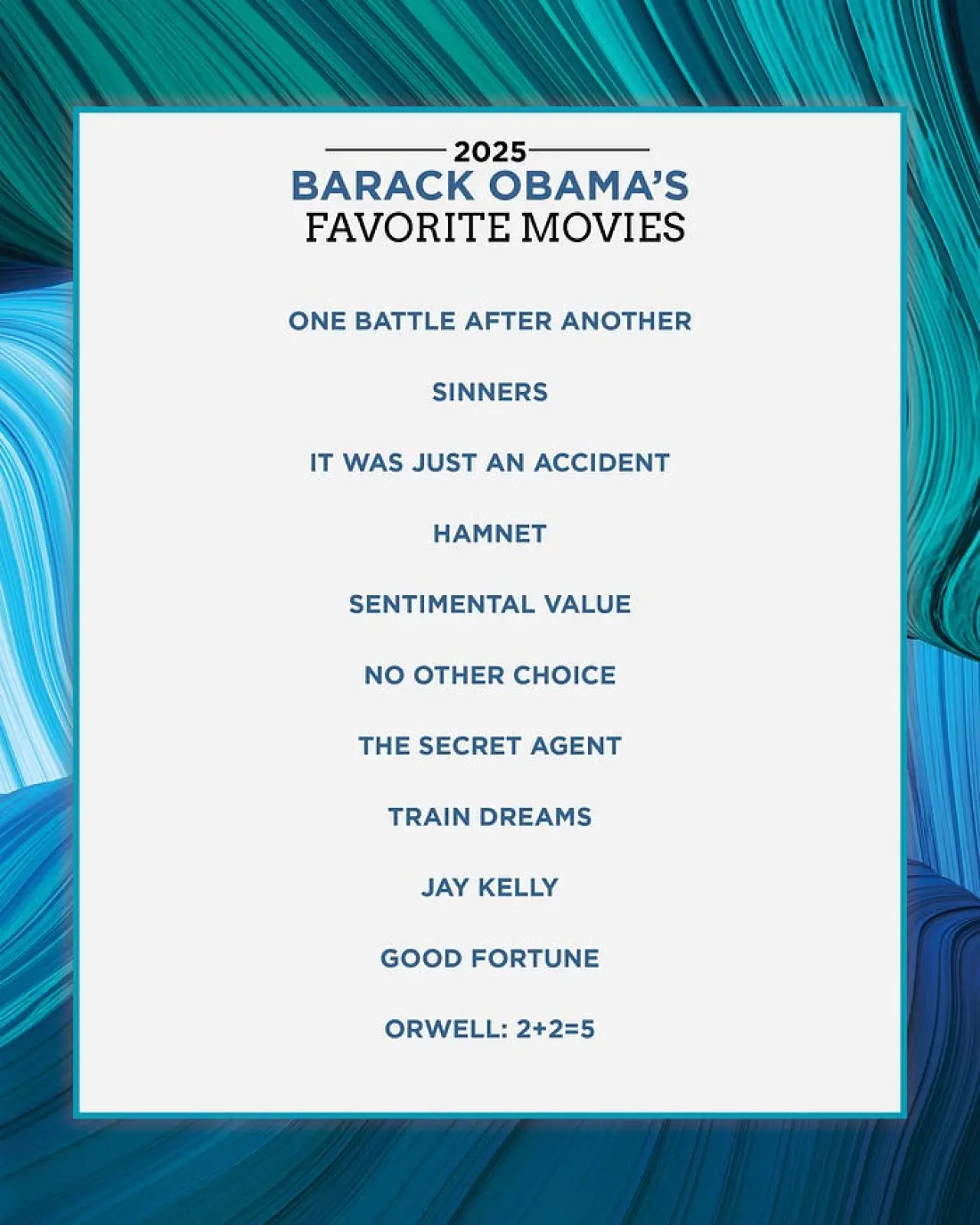 Film seçkisine gelince, Obama’nın tercihleri kasıtlı, karakter odaklı hikaye anlatımına olan eğilimini ortaya koyuyor. Ryan Coogler’ın Sinnersı, Paul Thomas Anderson’ın One Battle After Anotherı ve Chloé Zhao’nun Hamneti gibi yapımlar; hızlı sonuçlar peşinde koşmak yerine ölçülü bir yoğunlukla ilerleyen filmlere duyulan iştahı gösteriyor. Liste; Güney Kore gerilimi No Other Choice, Aziz Ansari’nin Good Fortuneı ve Raoul Peck’in belgeseli Orwell: 2+2=5 ile tamamlanıyor ve her biri Obama'nın sinematik öne çıkanlarına kendine özgü bir ses katıyor.