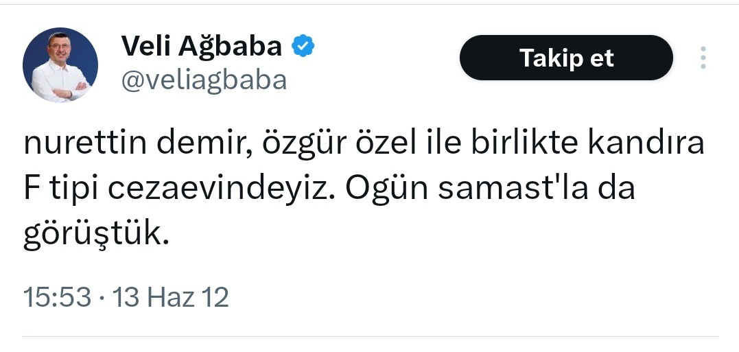 Tepkisinin sonrasında Özgür Özel’e ciddi eleştiriler getirildi. Çünkü, CHP Malatya Milletvekili Veli Ağbaba’nın Özgür Özel ile birlikte Kandıra F Tipi Cezaevi’nde Ogün Samast’ı ziyaret ettiklerine dair bir paylaşım ortaya çıkmıştı.