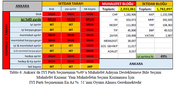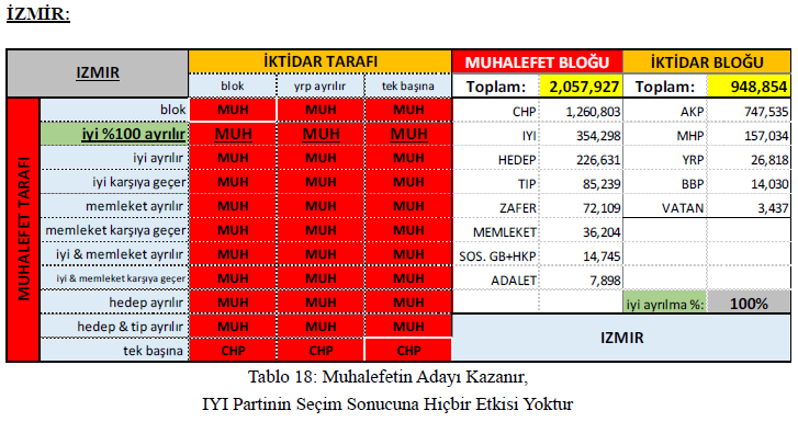 31-Mart-2024’te yapılacak yerel seçimlere ilişkin İYİ Partinin her seçim çevresinde ayrı aday çıkarması kararının neye karşılık geldiğini “Büyükşehir Belediyeleri Seçim Sonuçlarına Etkisi” başlıklı çalışmasıyla ortaya koydu. Çalışma da, İYİ Partinin seçim sonucuna hiçbir etkisinin olmadığı Büyükşehir Sayısı 22 olarak hesaplanırken, 8 Büyükşehirde ise belirleyici konumuna dikkat çekti. Çalışmada, CHP’deki yeni genel başkan seçiminin olumlu etkisinin yapılacak bir ön seçimle daha da yükseleceği görüşüne yer verdi.
